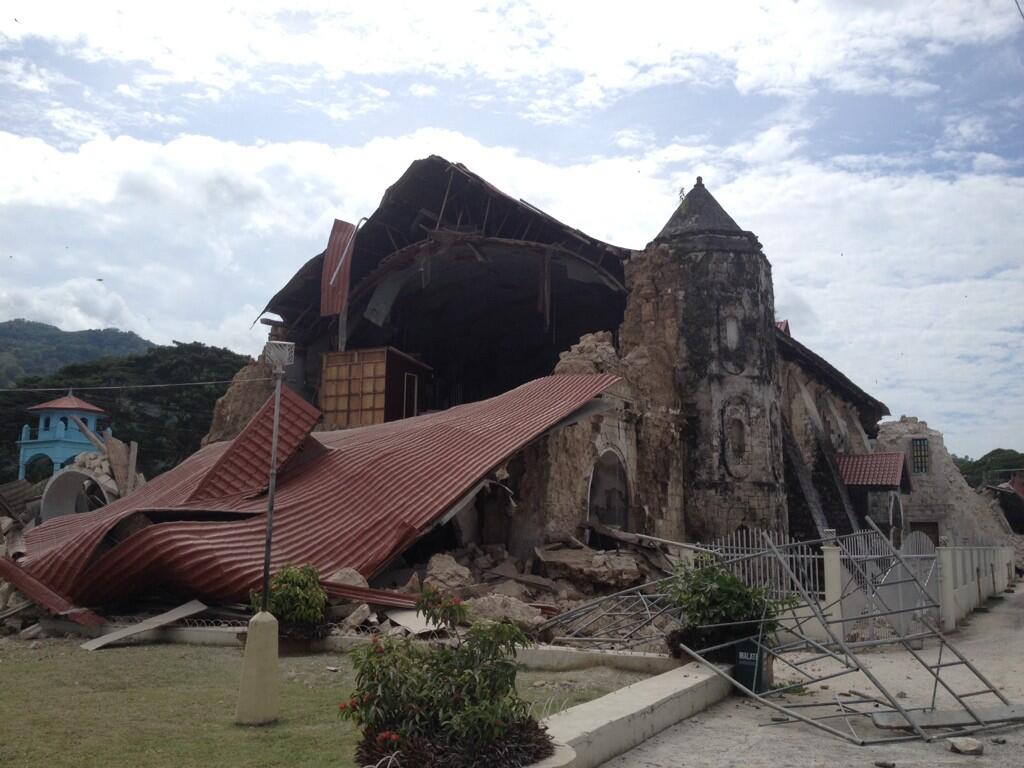 Dauis Church in Panglao, Bohol, famous for its healing well in front of the altar, also damaged: photo by Harold Geronimo, 15 October 2013 (via Twitchy)