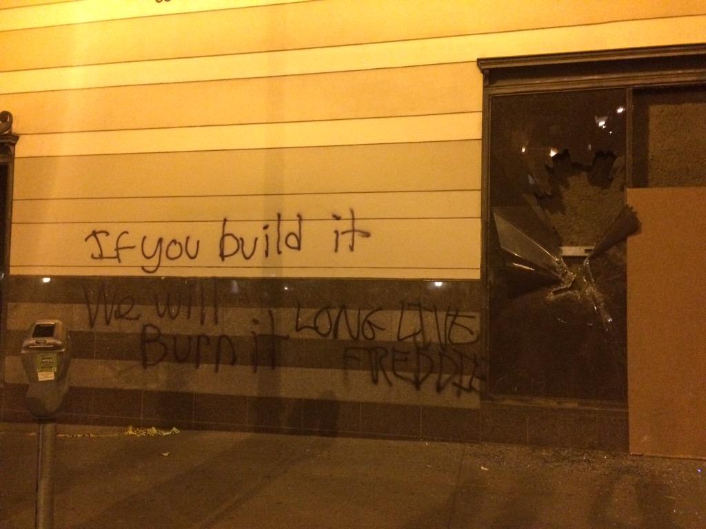 KFC got it tonight in Oakland. #FreddieGray: image via AJ Vicens @AJ Vicens, 1 May 2015