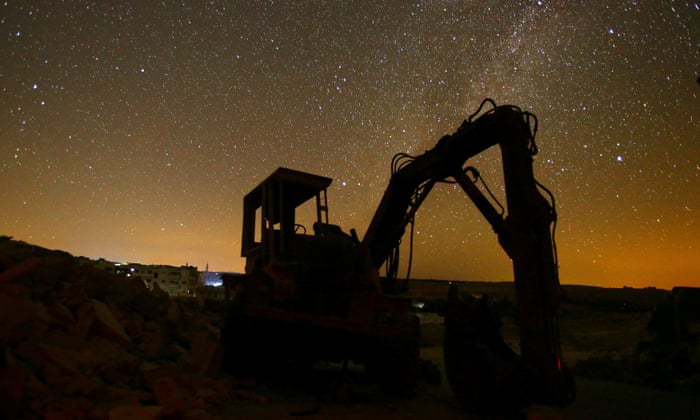 A digger stands amid the rubble in the rebel-controlled town of Maaret al-Numan. Idlib is just 60km from Aleppo, and has been overwhelmed by Aleppans fleeing the city after more than 100 days of air strikes.: photo by Ammar Abdullah/Reuters, 31 December 2016