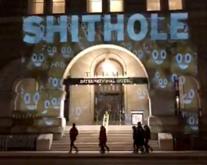 Trump: downgrading Liberty since 2016 [Trump shithole, LA]: photo by Andrew Murr, 13 January 2018