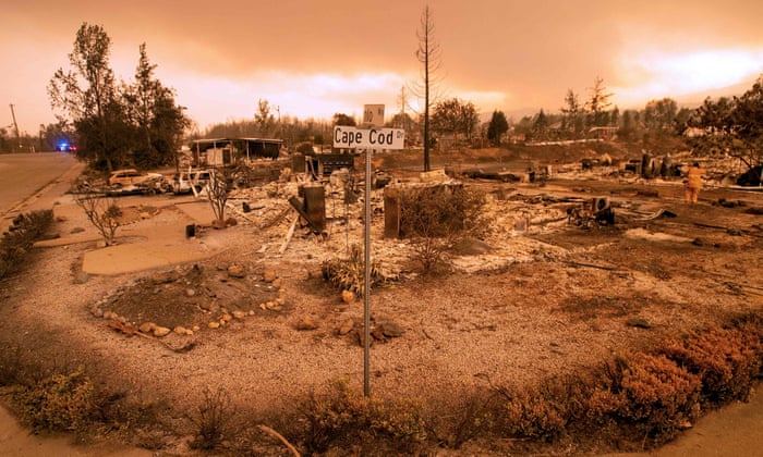 Smoke and haze from #carrfire cause a strange color cast and the withered trees help form such a desolate landscape: image via Marcus Yam @yamphoto, 28 July 2018