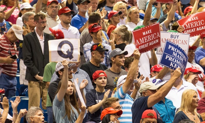 A Trump supporter holds up a QAnon sign in Tampa.: photo by Rod Millington/EPA, 2 August 2018