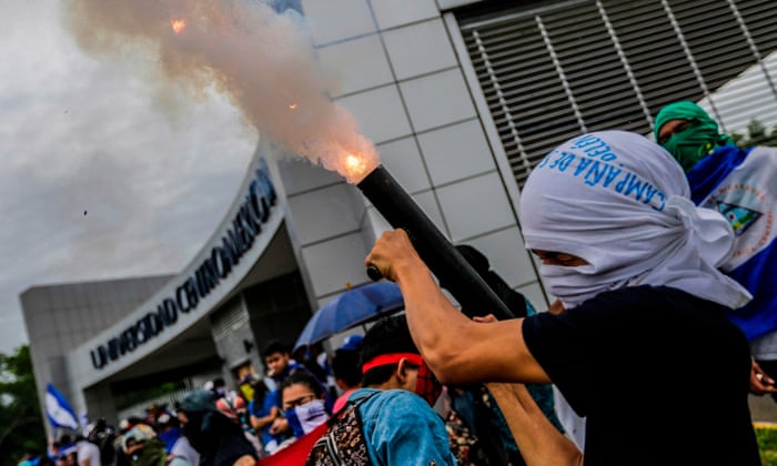 A student fires a homemade mortar during a protest to demand President Daniel Ortega resign, in Managua, Nicaragua.: photo: Inti Ocon/AFP/Getty Images, 3 August 2018