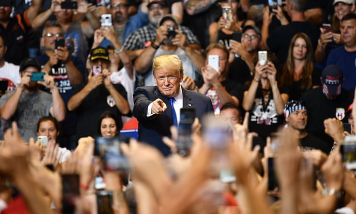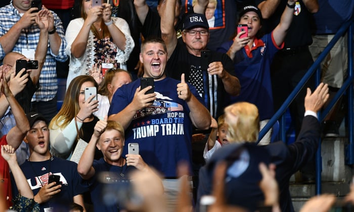 Supporters cheer on Donald Trump at a rally in Wilkes-Barre, Pennsylvania.: photo by Mandel Ngan/AFP/Getty Images, 4 August 2018