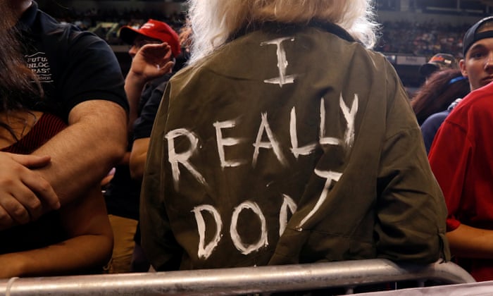 An attendee wears a top reading ‘I really don’t care, do U’, echoing a jacket worn by Melania Trump en route to the US-Mexico border.: photo by Leah Millis/Reuters, 4 August 2018