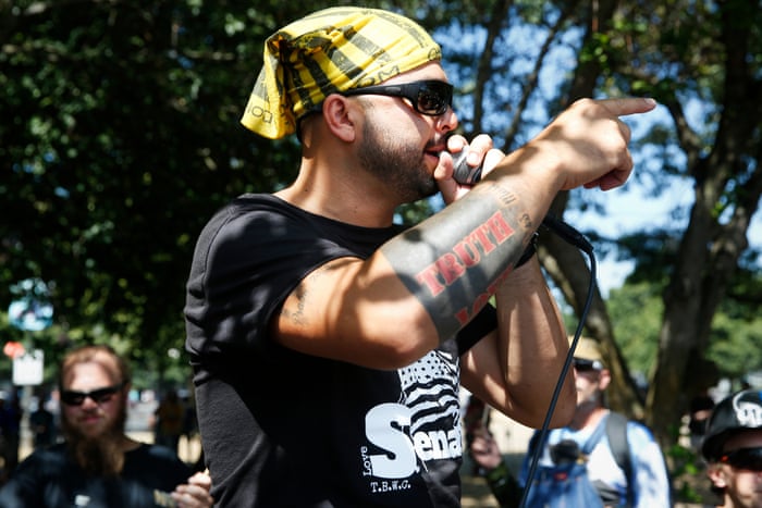 US Senate candidate Joey Gibson speaks at a rally in Portland, Oregon.: photo by Terray Sylvester for the Guardian, 4 August 2018