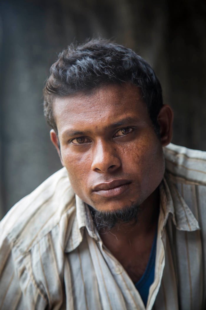 at a refugee camp in neighbouring Bangladesh, his eyes bloodshot and his