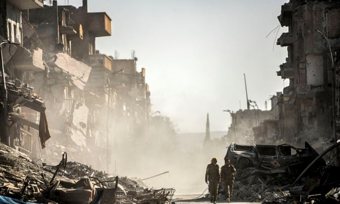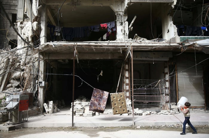 A devastated street in Douma on Friday.: photo by Mohammed Badra/EPA, 9 March 2018