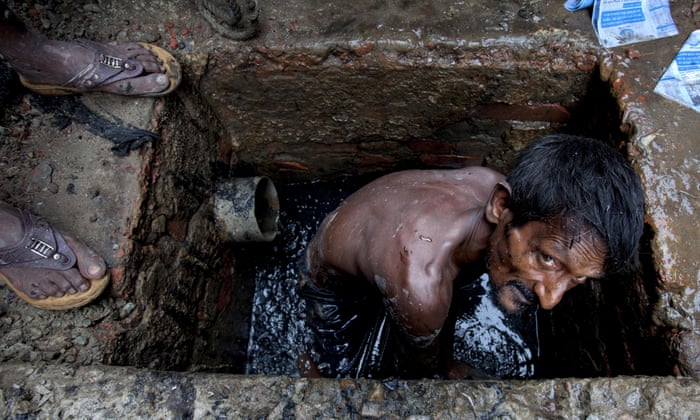 Cleaning sewers has been described as the world’s worst job.: photo by KM Asad/Zuma Wire/Rex/Shutterstock via The Guardian, 21 March 2018